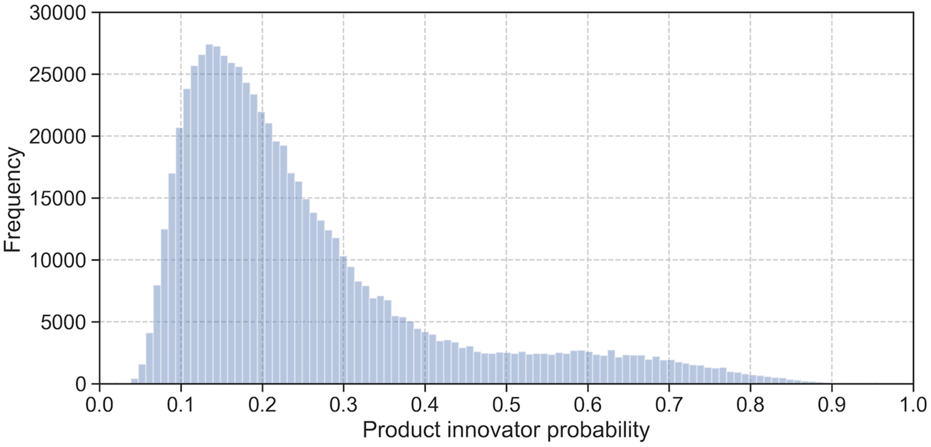 Websites are used by companies as platforms to provide information about their products and services, performance, strategies, and relationships. All these aspects can be associated with the innovations developed by the company. The InnoProb Score does not intend to identify individual innovations (e.g. new products), but companies with an innovation-related activity profile. This probability (the InnoProb Score) can be interpreted as a continuous innovation indicator at company level.